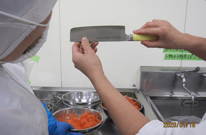 ⑤ 異物混入防止策として刃物を使用した後は必ず刃こぼれチェック